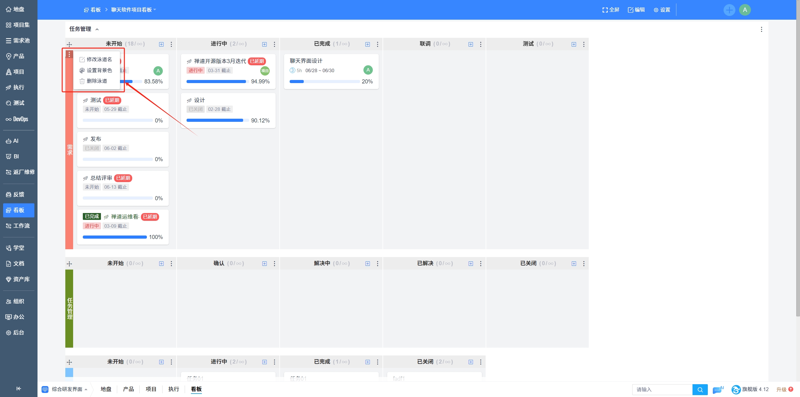 禅道的看板功能介绍
