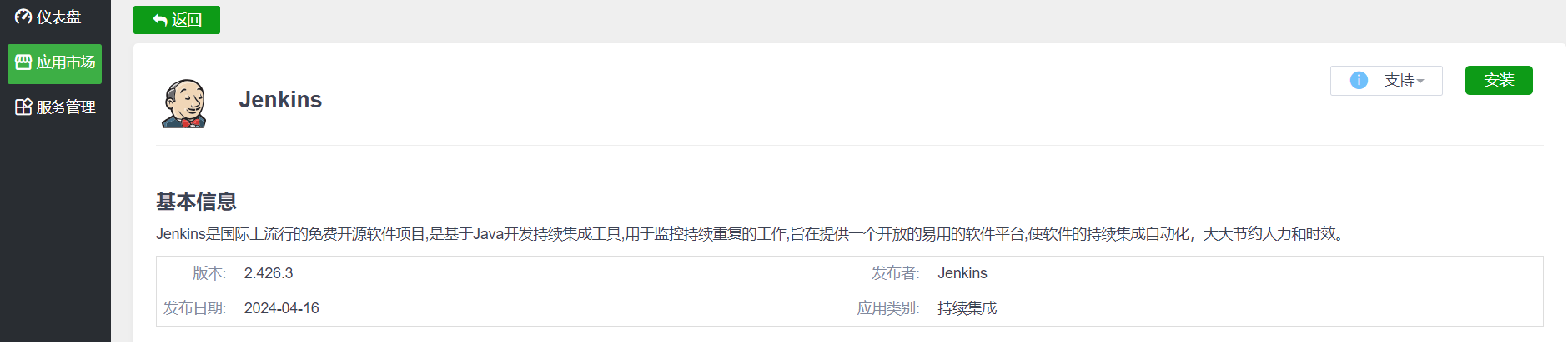 - 云原生应用市场。这是禅道智能应用平台的核心功能,用户可以通过应用市场,选择和安装需要的应用。
