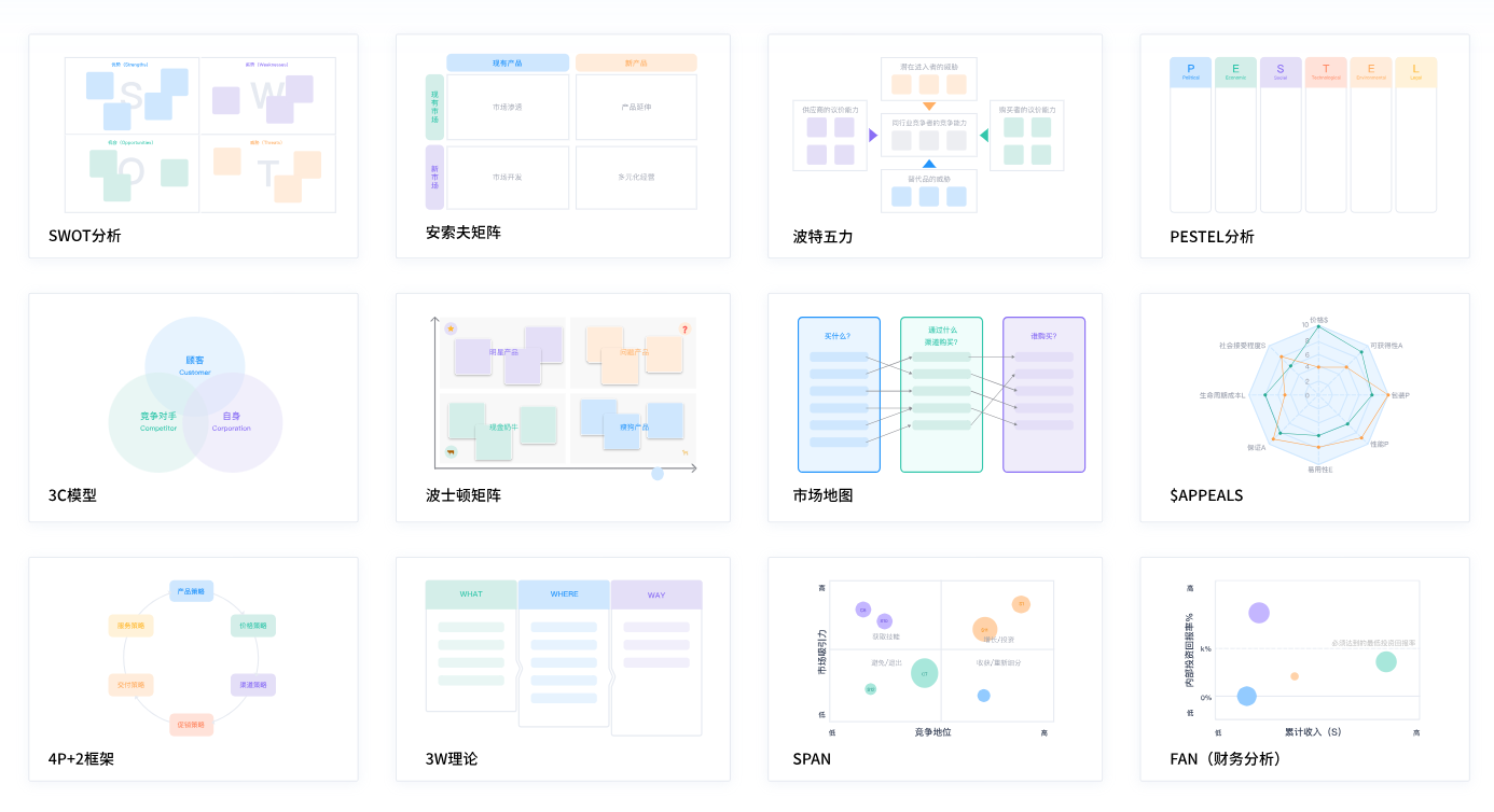 例如,可以通过SPAN矩阵进行战略定位分析,从细分市场的吸引力、公司的竞争力两个维度出发,为产品规划提供决策依据。