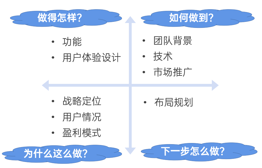 有不少的产品经理做的竞品分析报告,大多都是围绕产品本身进行分析,比如功能、界面、交互设计等,也就是对竞品“看得见”的部分进行分析,当然这可以帮助我们了解对手的产品做得怎么样。但如果仅限于这些“看得见”的内容,我们就会遗漏掉很多关于产品的更重要的信息,比如:- 竞品为什么这么做?