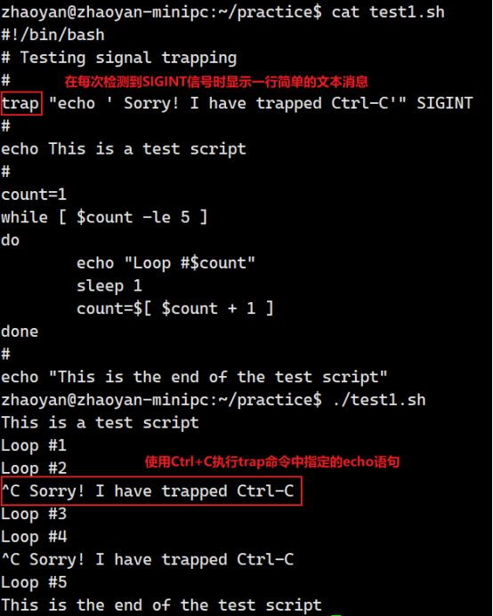 trap命令允许指定shell脚本要监看并从shell中拦截的Linux信号。命令格式:trap commands signals
