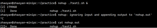 当想在终端会话中启动shell脚本,让脚本一直以后台模式运行到结束,即使已经退出了终端会话时,可以使用到nohup命令。nohup命令运行了另外一个命令来阻断所有发送给该进程的SIGHUP信号,会在退出终端会话时阻止进程退出。