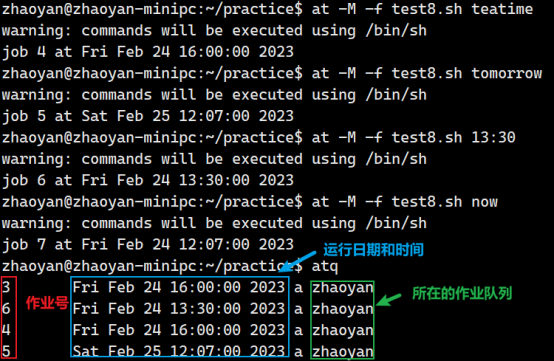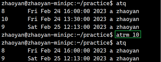 使用atq命令后知道了哪些作业在作业队列中等待,可以使用atrm命令+作业号来删除等待中的作业。