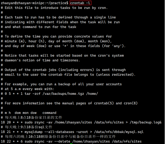 cron时间表采用一种特别的格式来指定作业何时运行。格式为:min hour dayofmonth month dayofweek command
