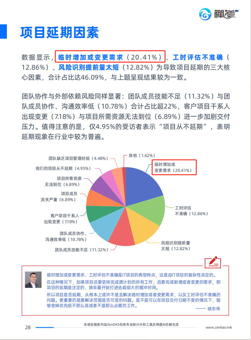近期发布的2024年《 IT行业项目管理调查报告》显示,当前IT行业团队面临的核心问题中“项目频繁出现需求变更”排在首位,是当前绝大多数团队普遍面临的问题。另据报告数据显示“临时增加或变更需求”已成为导致项目延续的三大核心因素之首。能否做好需求管理,关系到项目是否能够按期交付,也IT团队正在面临的核心挑战。