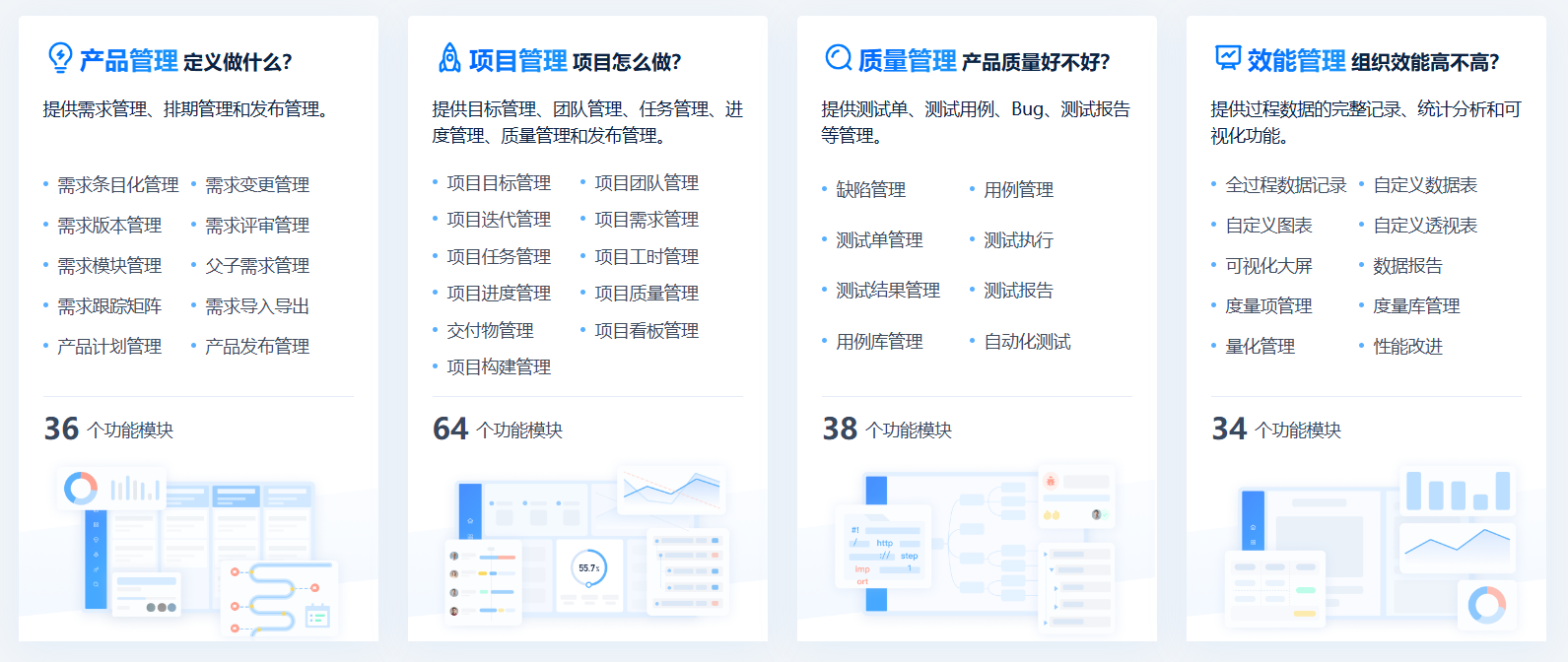 禅道不同于那些只解决单一环节的工具,它将产品管理、项目管理、质量管理和效能管理四大核心功能集于一身,彼此间独立运行的同时又可相互协作依存,通过这样的结构化的设计,让项目中的需求不再是邮件里的零散文字,而是可以拆解、评审、版本化管理的条目;任务不再是口头承诺,而是有负责人、有工时、有进度的明确指令;Bug 不再是聊天记录里的截图,而是包含重现步骤、严重程度、关联代码的完整报告。