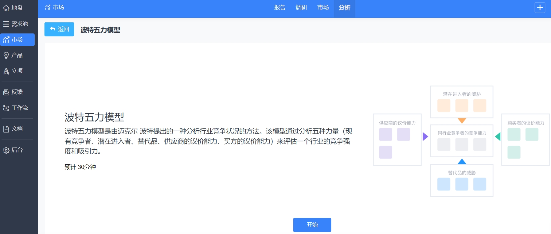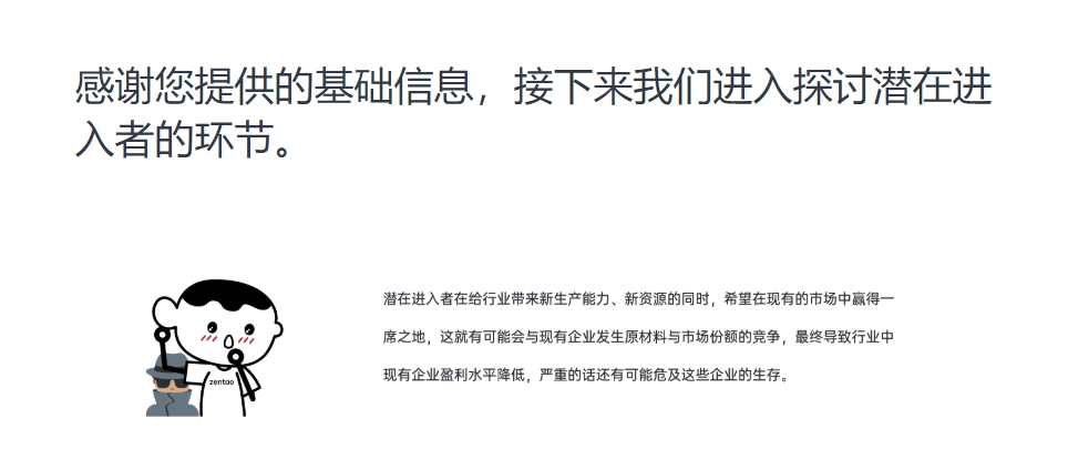 接下来,我们可以在禅道企业决策分析解决方案中,通过波特五力模型,更全面系统地分析企业自身市场定位及竞争态势,制定科学高效的战略决策。
