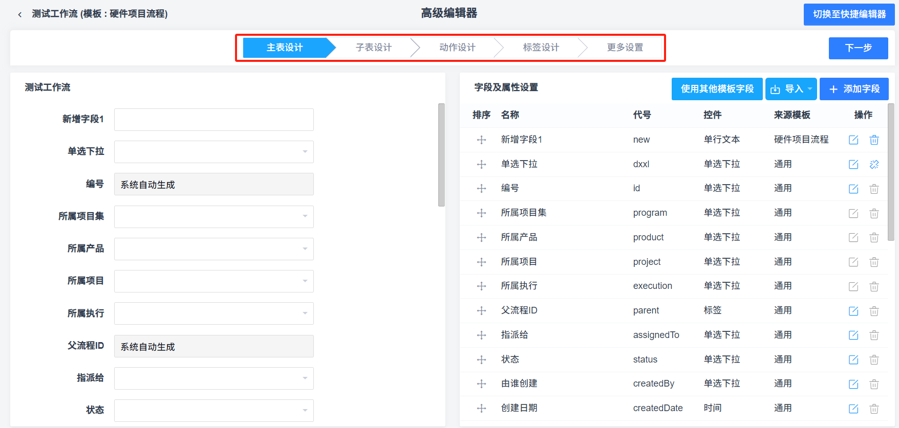 比如,当企业需要同时做消费级产品和工业级产品,借助禅道流程模板,就可以轻松为不同产品类型配置不同的表单和流程:
