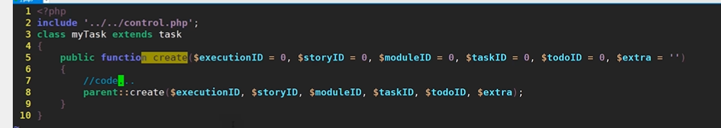 扩展控制器方法create():在ext下建control文件夹,在control下建文件create.php,自己写一个create方法。