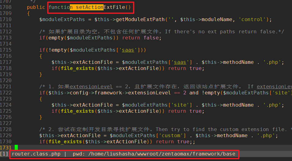 - 实现代码在setActionExtFile()方法中。