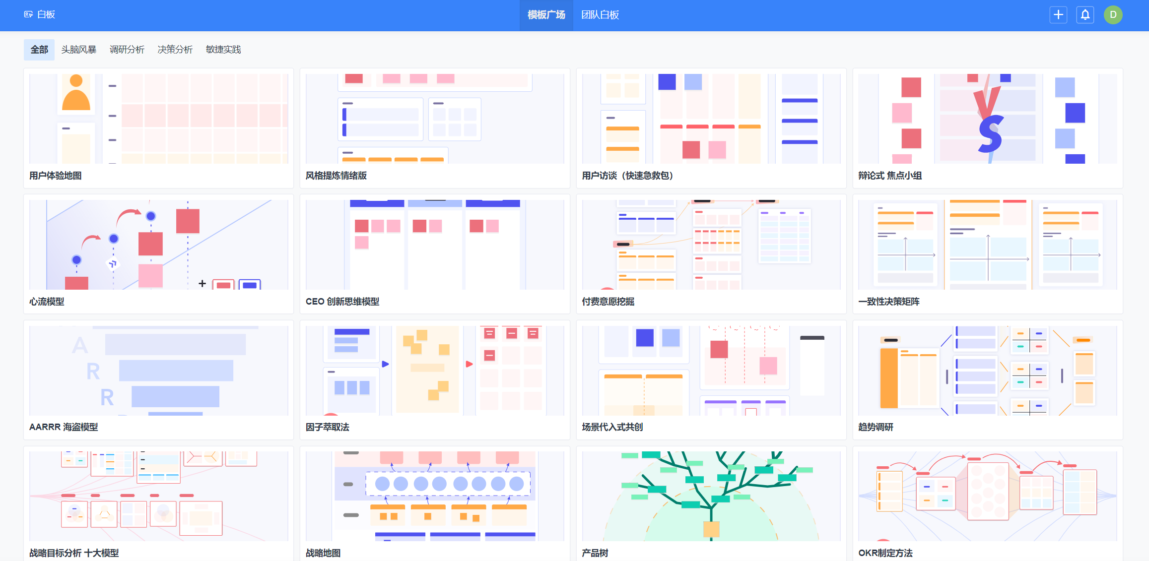 除了上面提及到的模板,禅道协作白板中还有很多实用模板: