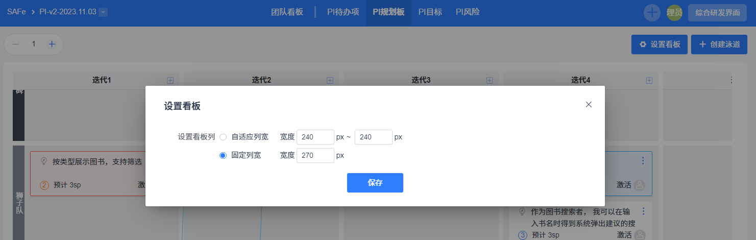 点击设置看板,可以设置PI看板的列宽。