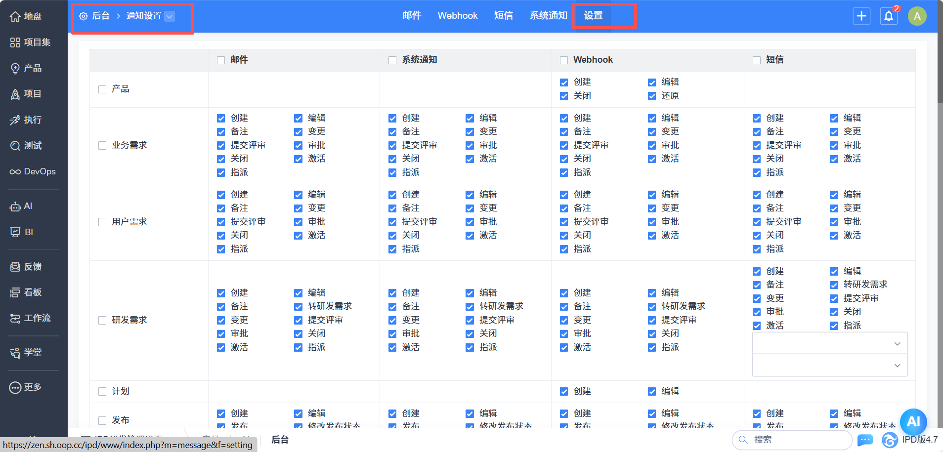 2. 系统通知与 Webhook 设置