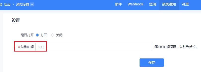 路径:后台 / 通知设置 / 设置