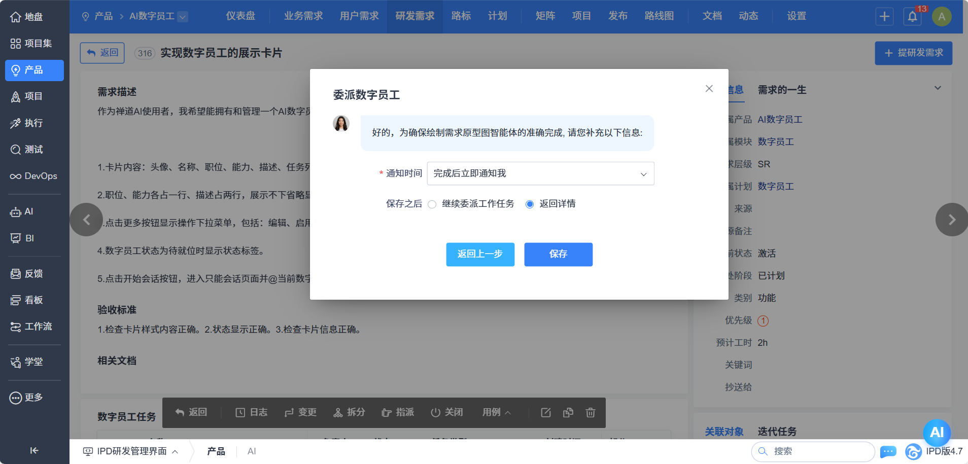 路径:在委派数字员工时,设置通知时间: