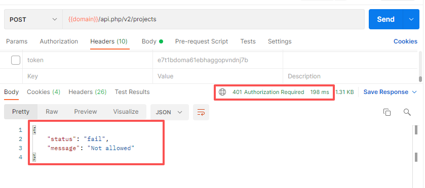 如果请求接口,发现返回了401的响应,表示没有正确携带Token