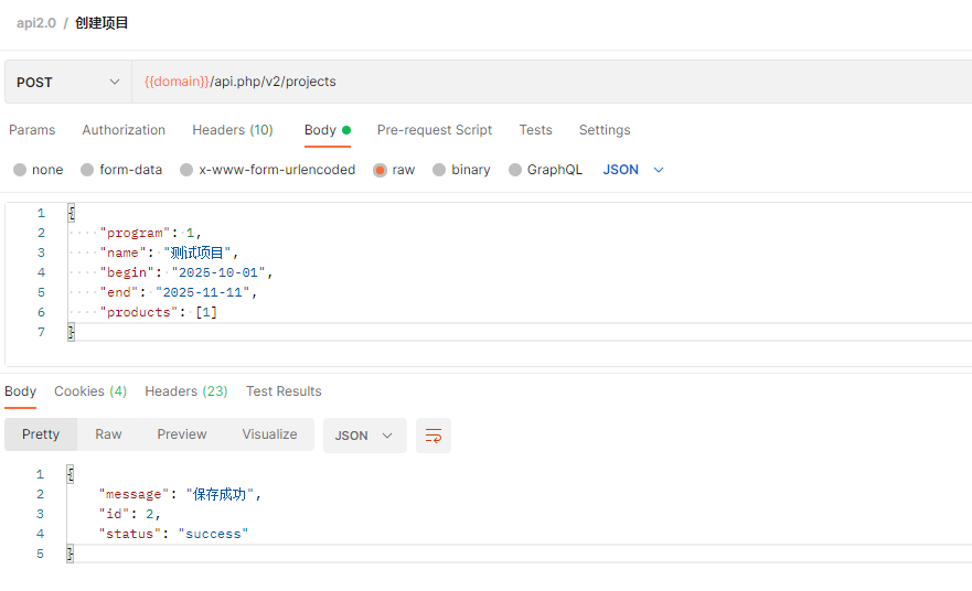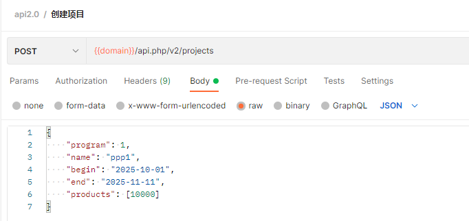 2. 请求创建项目API