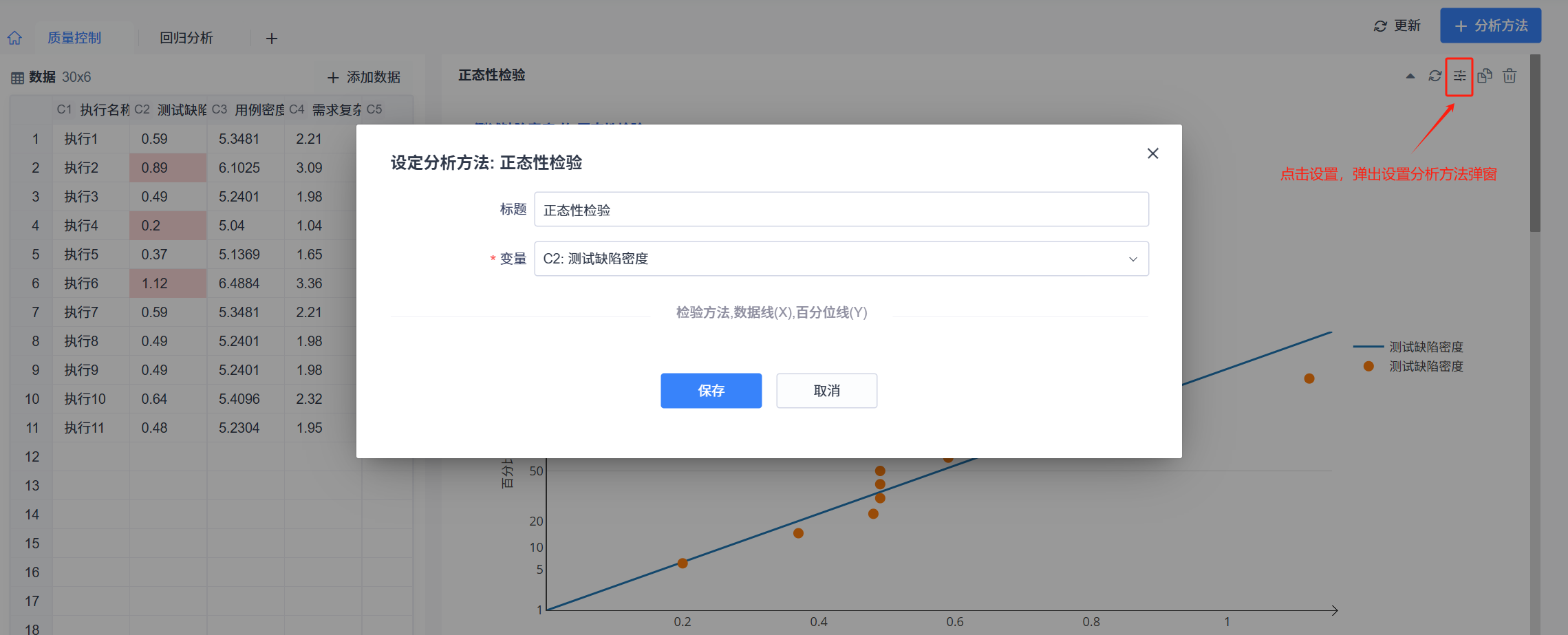 点击分析结果面板标题右侧的“设置”按钮,即可打开“设定分析参数”对话框,此时可以重新修改各项参数,点击“保存”按钮可立即更新分析结果。