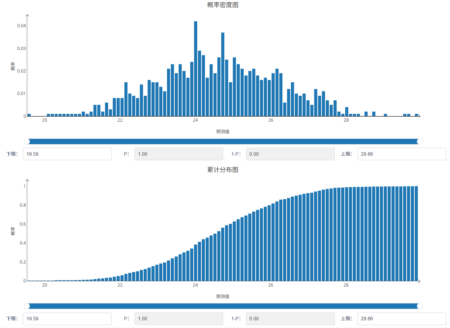 - 累计概率密度图:累计概率密度图展示目标结果的累计概率分布,反映目标结果小于或等于某一值的概率。