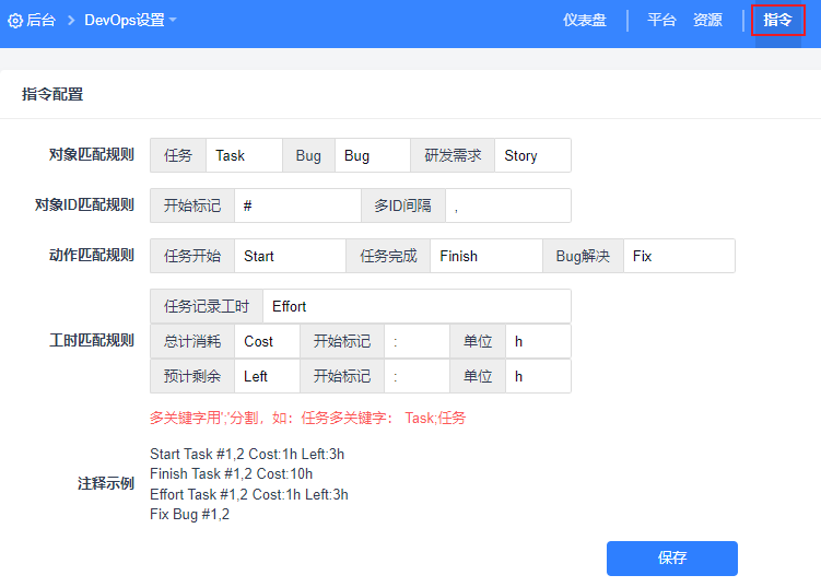 这里可以关联禅道对象与代码库提交注释关键字之间的关系,目前禅道对象支持任务、研发和需求。