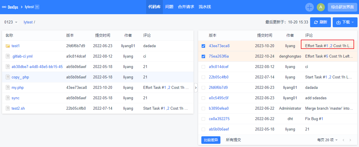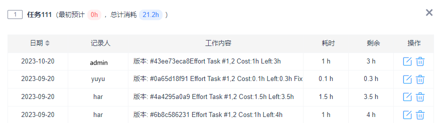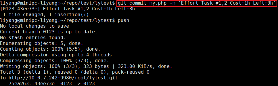 以示例为例子,我们通过commitID注释信息来记录任务的工时。