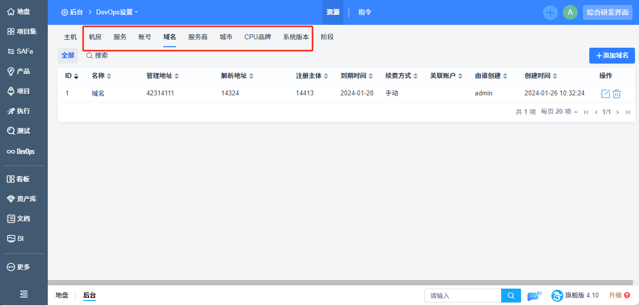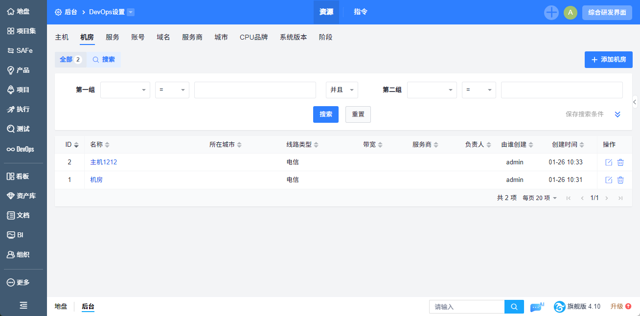 添加成功的机房可以在机房页面查看,也可以通过条件搜索机房。