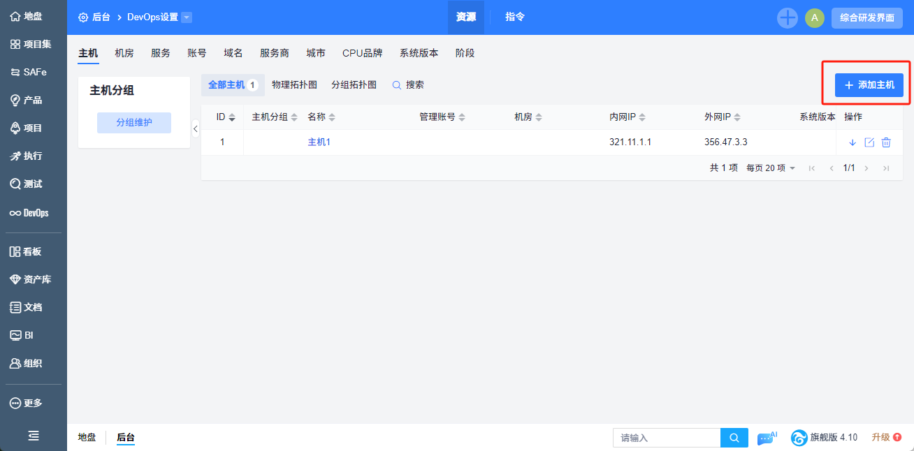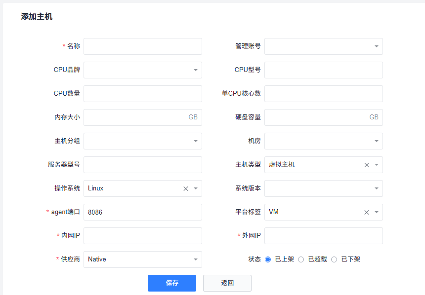 点击主机页面右上角 添加主机 按钮,即可进入添加主机页面,