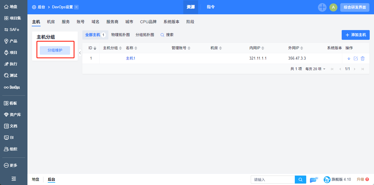 点击分组维护即可添加主机分组:
