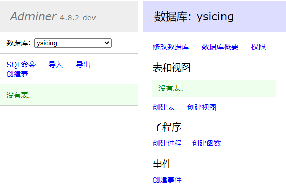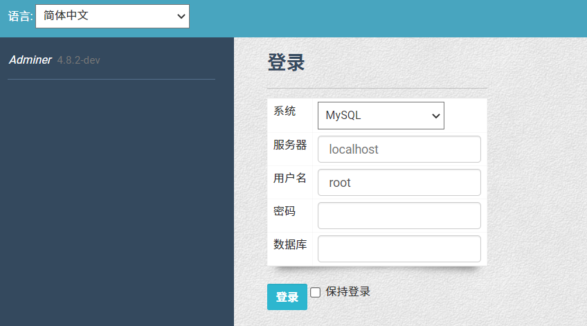 点击列表中最后一列管理按钮后,会在新的页面打开Adminer插件。