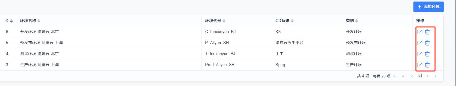 点击列表的操作按钮,可以对环境进行编辑删除操作。