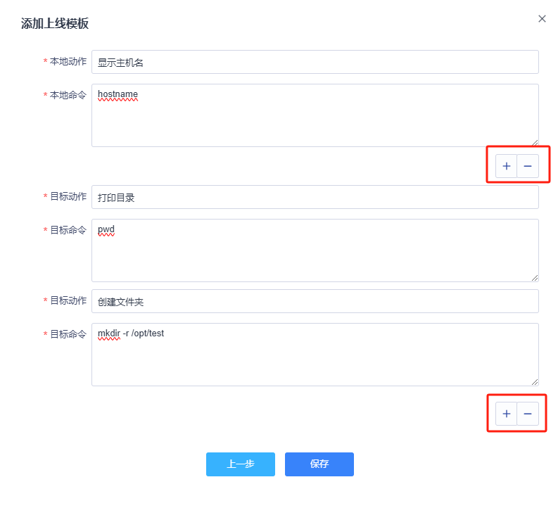 目标动作 可以添加多个执行动作,执行对象为发布的目标主机,按顺序依次执行。