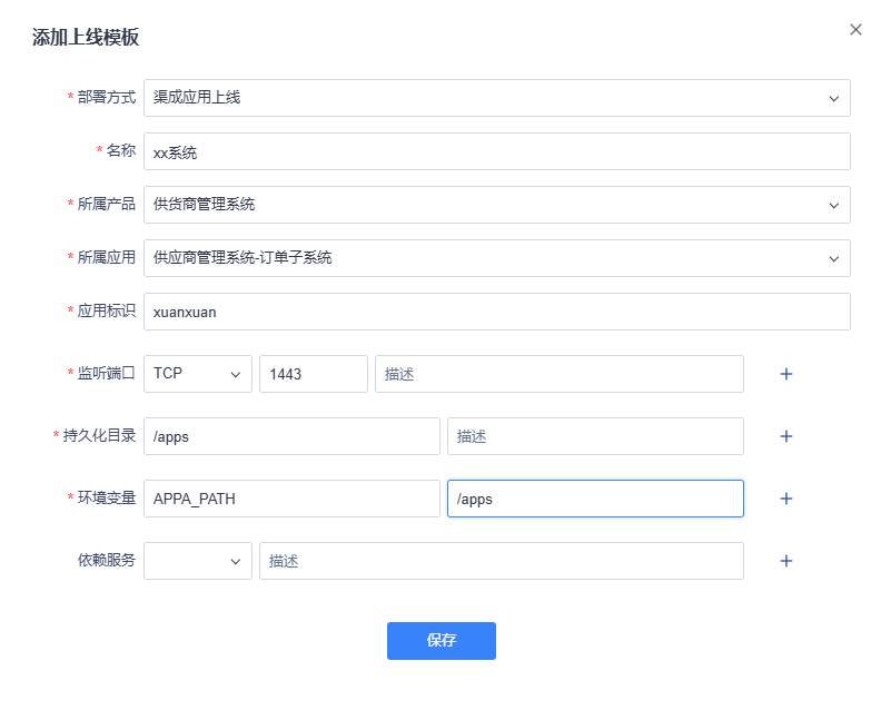 2、渠成应用上线模板:需要部署渠成平台,通过定义渠成应用模板的形式,发布渠成应用。