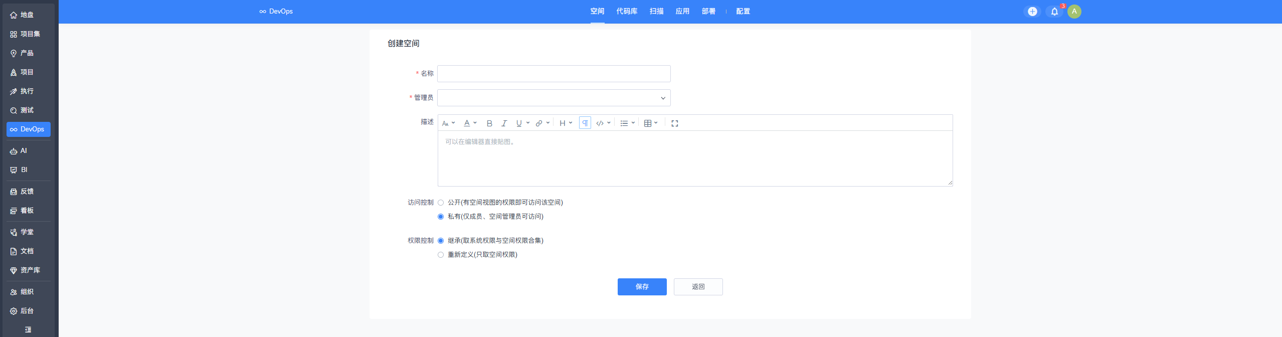 在空间列表点击右上角的创建空间按钮,即可进入创建空间页面。