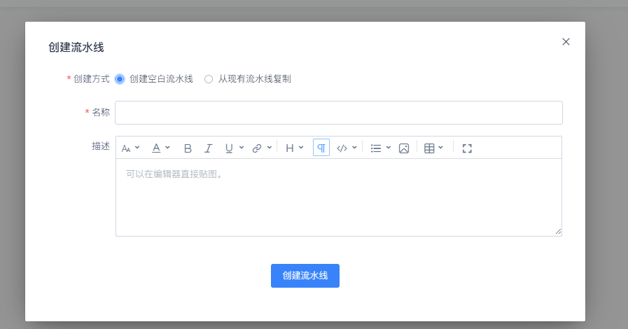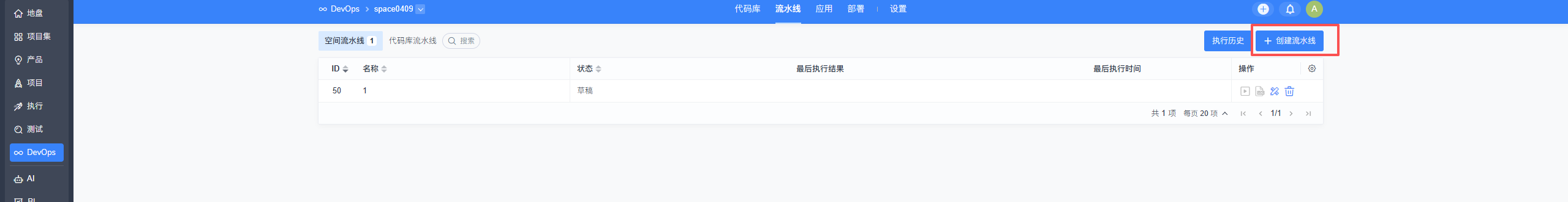 进入代码库-流水线列表,或空间-流水线列表,点击创建流水线。