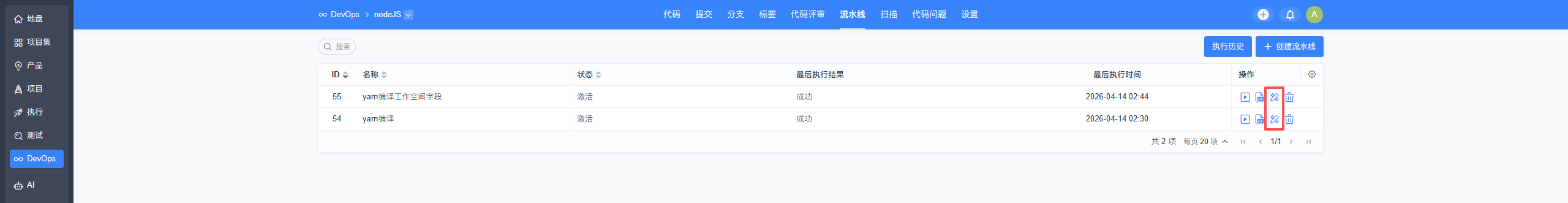 空间流水线:归属于空间层级,属于无源流水线,支持手动触发和定时触发,可用于跨代码库任务。