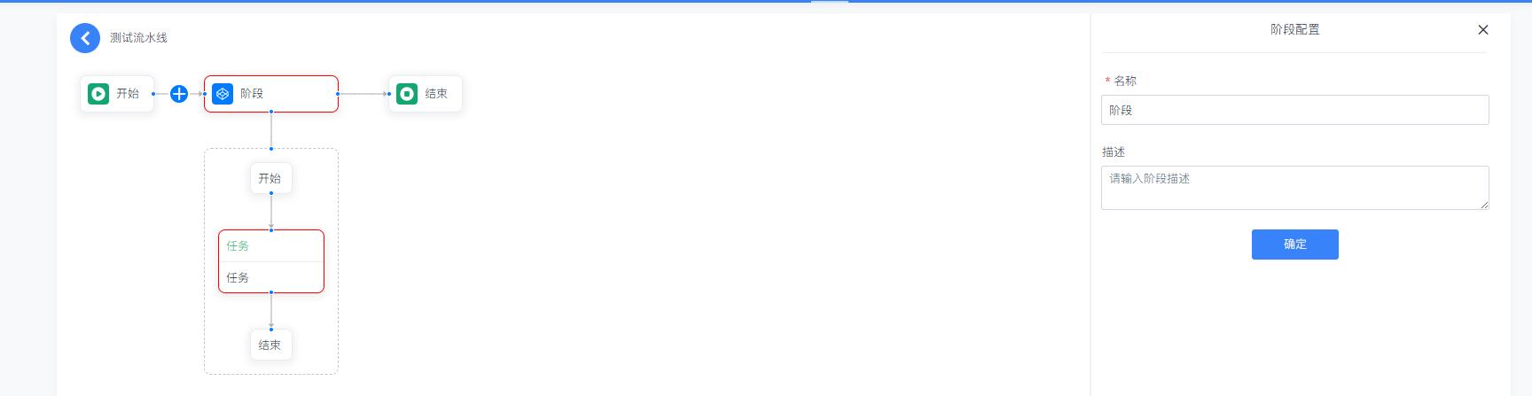 鼠标悬停在阶段的连接线上,即可添加下一个阶段。