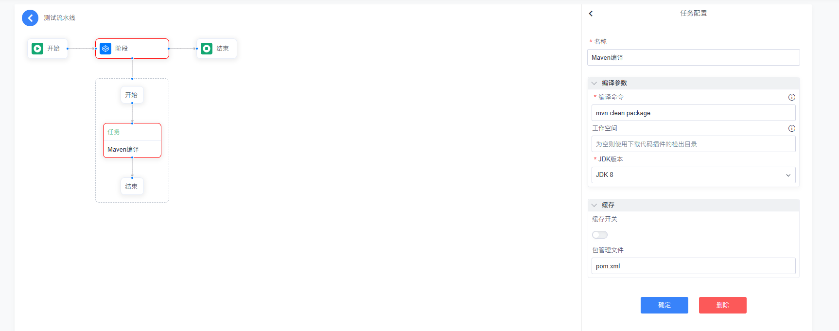 流水线执行的基本单元为任务,不同的任务可以组合成为阶段,流水线会按照阶段顺序执行任务。