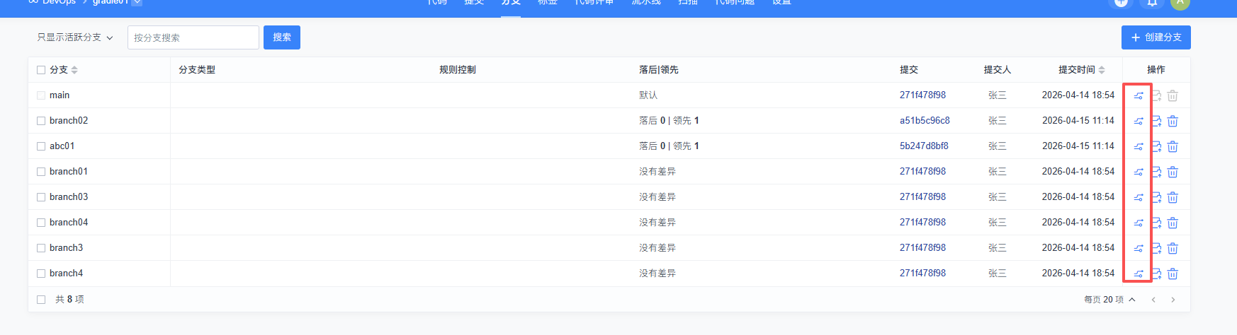 在分支列表点击分支规则设置按钮,即可进入分支规则设置菜单。