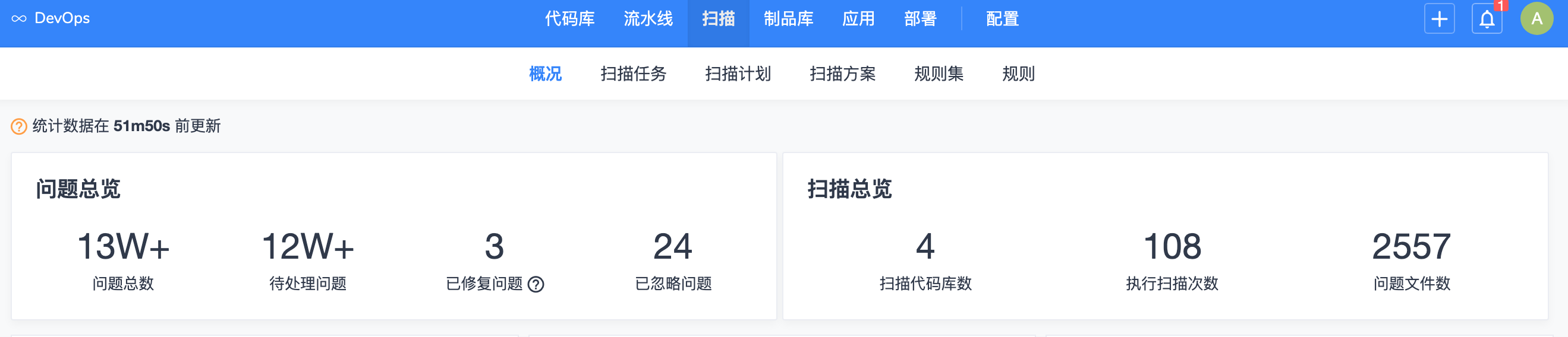 1. 数据概览:呈现问题总数、待处理 / 修复 /忽略问题数等核心数据,及扫描代码库数、执行次数、问题文件数,快速掌握代码质量全貌。