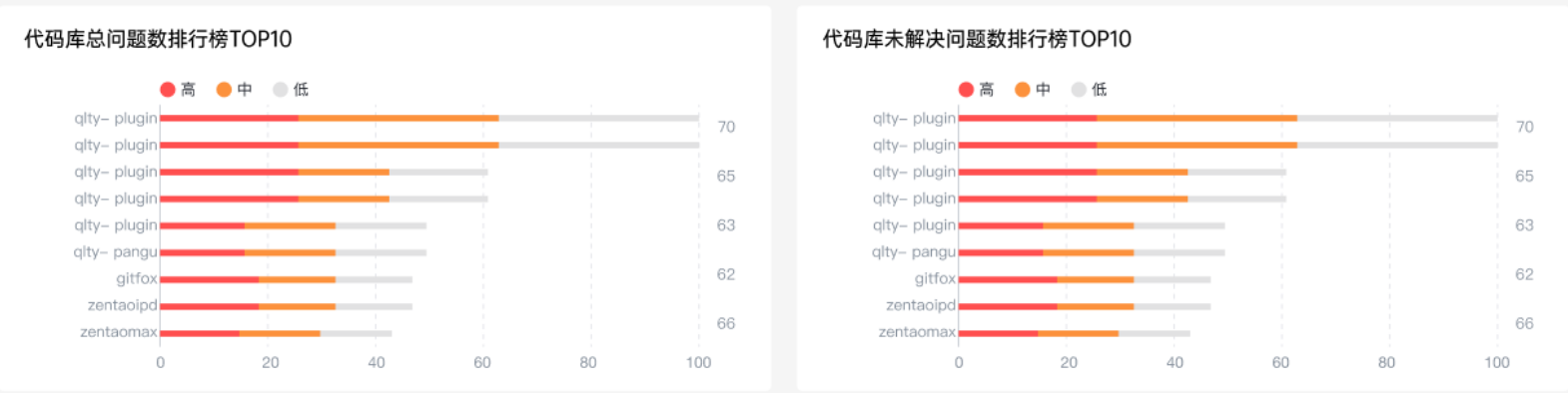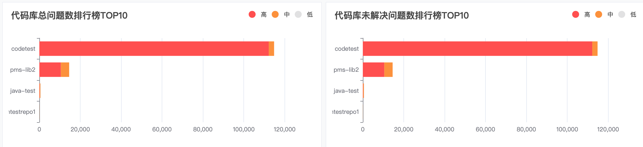 生成代码库总问题数、未解决问题数 TOP10 榜单,定位问题高发 / 待处理重点库。