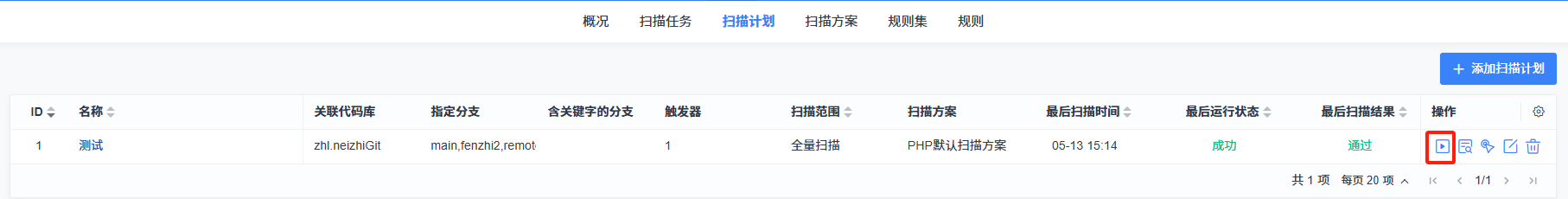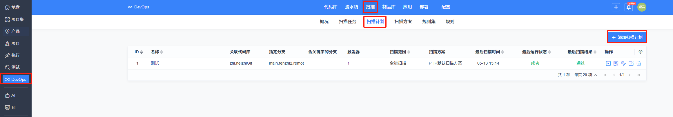 在扫描计划列表中找到需要编辑的扫描计划,点击其操作栏中的“编辑”按钮。在弹出的编辑界面中,可对扫描计划的各项参数,诸如名称、关联代码库、扫描分支、扫描范围、扫描方案、结果通过标准等进行修改。修改完毕后,点击“保存”按钮保存更改内容。