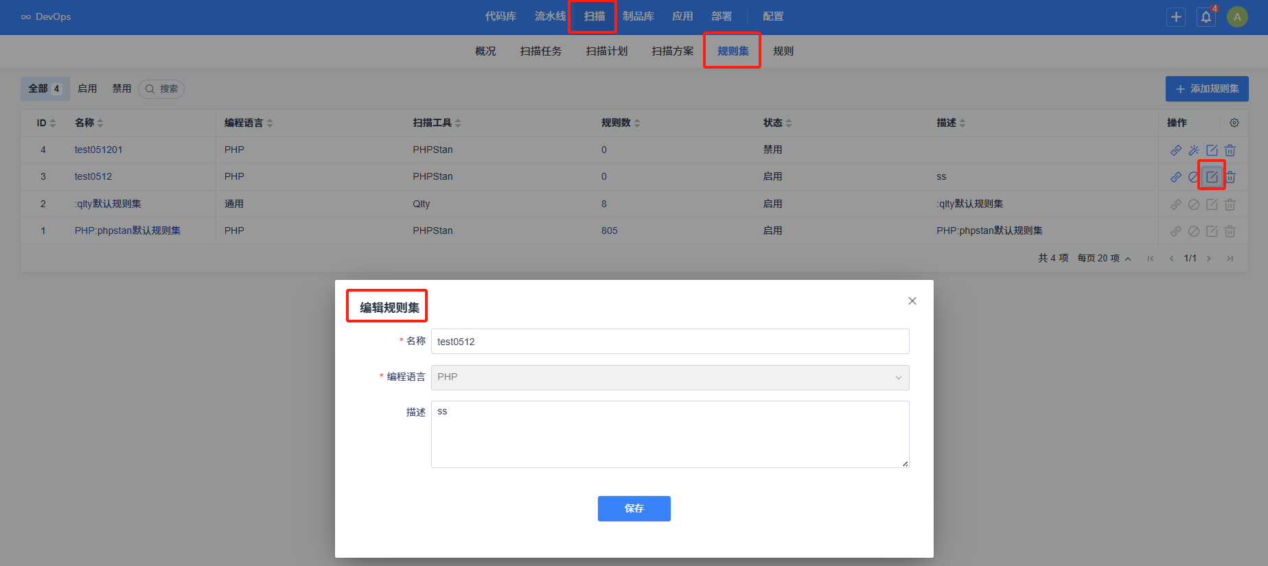 在规则集列表中,找到需要编辑的新建规则集,点击其操作栏中的 “编辑” 按钮。在弹出的编辑界面中,可对规则集的名称、描述等信息进行修改。修改完成后,点击 “确定” 按钮保存更改。默认规则集无此操作功能。