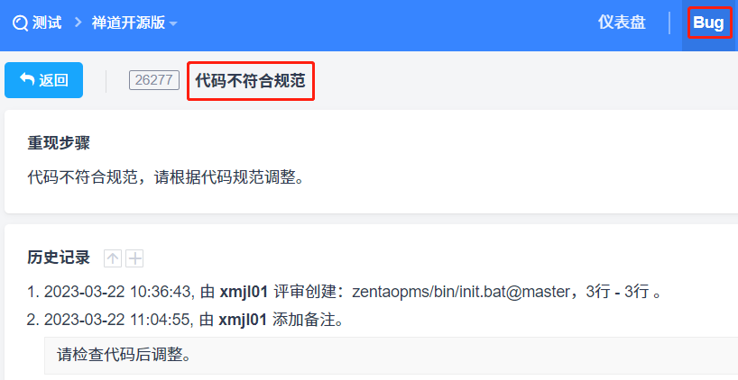 点击问题标题可以浏览对应Bug的详情信息,通过Bug来跟踪处理情况。