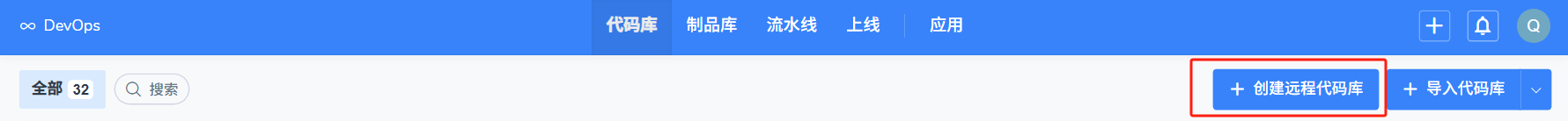 平台内置GIt服务,研发团队可以在代码库列表点击右上角的创建远程代码库按钮,新增代码库。