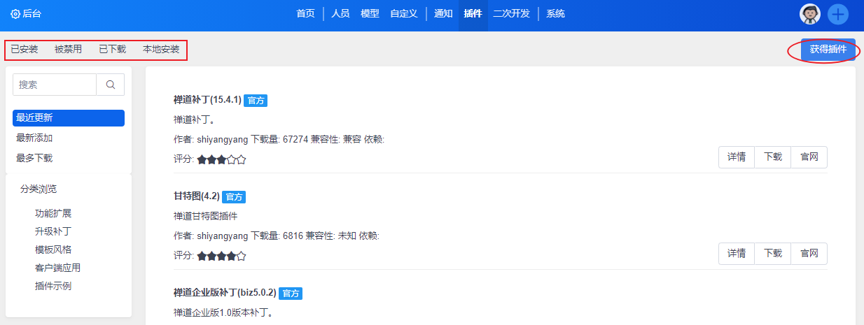 禅道提供了插件供开源用户灵活添加功能。