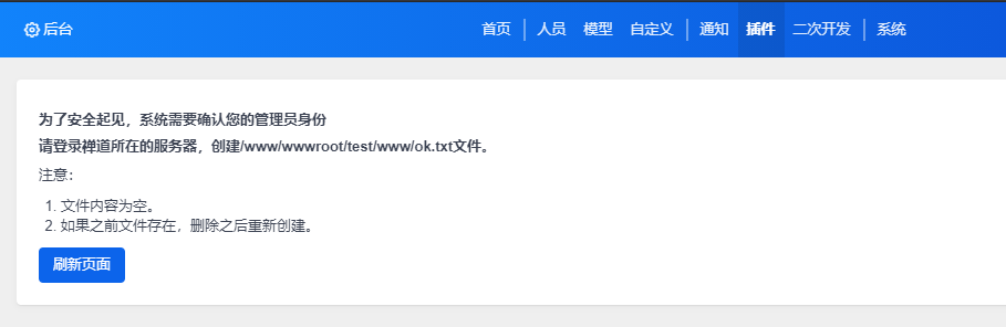 首次访问插件页面,需要验证管理员身份。按照提示操作即可。