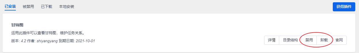 点击“查看已安装插件”,可以看到插件的信息,也可以进行维护。