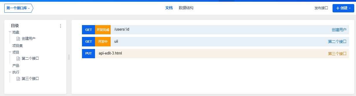 【15.7版本起】文档视图下新增了接口库文档功能。可以在这里管理接口文档、数据结构。