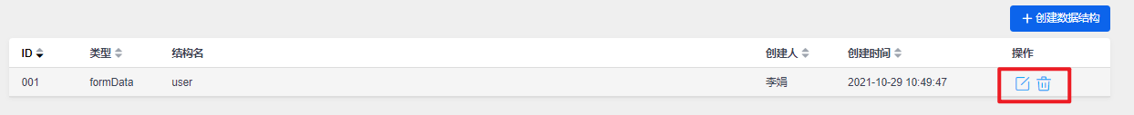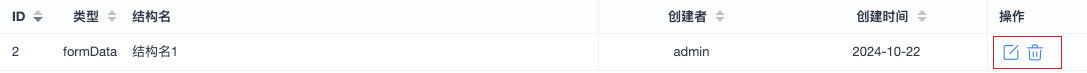 在数据结构列表页中,可以编辑数据结构表单或删除。
