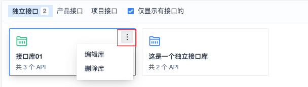 【21.1版本起】文档接口空间中新增了首页,在接口空间首页中可以查看独立接口库、产品接口和项目接口。进入库或项目/产品后可以查看库下的数据结构、接口版本、目录和文档。